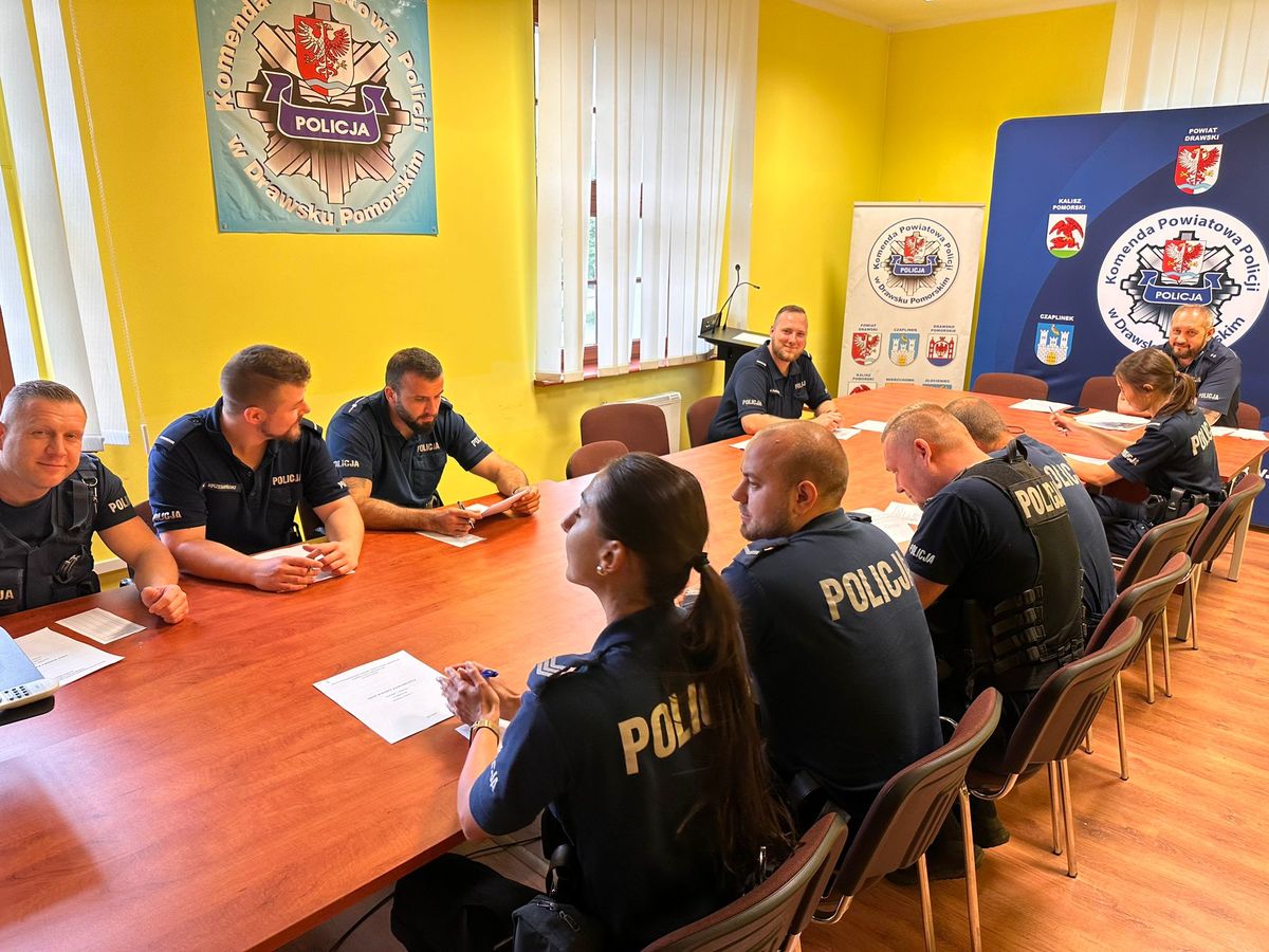 Funkcjonariusze z Komendy Powiatowej Policji w Drawsku Pomorskim przystąpili do 40 minutowego testu wiedzy zawodowej, który obejmował w szczególności pytania z zakresu zasad i taktyki pełnienia służby patrolowej, środków przymusu bezpośredniego, czy też etyki zawodowej policjanta.