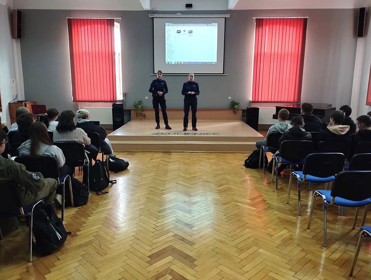 Policjantka z Komendy Powiatowej Policji w Drawsku Pomorskim wspólnie z dzielnicową z komisariatu Policji w Złocieńcu odwiedziły Zespół Szkół w Złocieńcu, gdzie przeprowadziły prelekcję poświęconą odpowiedzialności karnej osób nieletnich. Spotkanie miało na celu uświadomienie młodzieży, jakie konsekwencje mogą wynikać z łamania prawa oraz jakie są granice odpowiedzialności w przypadku osób poniżej 18. roku życia.