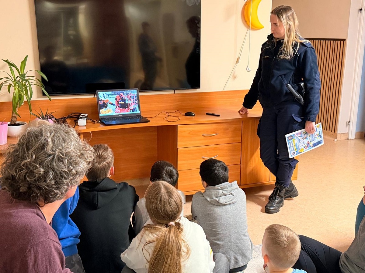 Omówione zostały również kwestie odpowiedzialnego zachowania podczas zimowych zabaw, unikania ryzykownych sytuacji oraz właściwego reagowania w sytuacjach zagrożenia. Funkcjonariuszka przypomniała numery alarmowe oraz podkreśliła, jak ważne jest informowanie dorosłych lub służb ratunkowych o niebezpiecznych zdarzeniach.