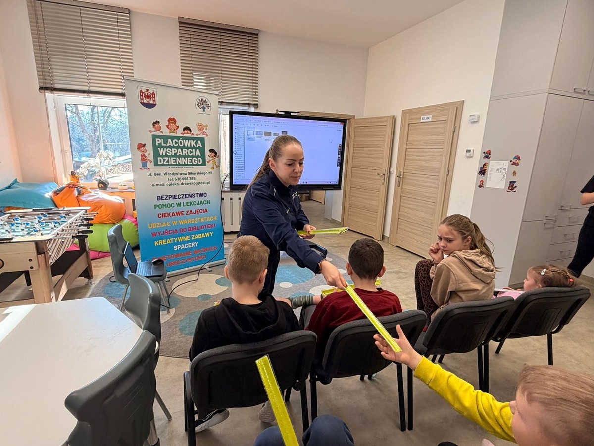 Ferie już za pasem, jednak policjanci nie zwalniają tempa i systematycznie prowadzą zajęcia dotyczące zasad bezpieczeństwa w trosce o dobro najmłodszych mieszkańców powiatu drawskiego. Profilaktyk z Komedy Powiatowej Policji w Drawsku Pomorskim przeprowadziła pogadankę z dziećmi w Placówce Wsparcia Dziennego w Drawsku Pomorskim na temat bezpiecznych zachowań w czasie ferii zimowych.