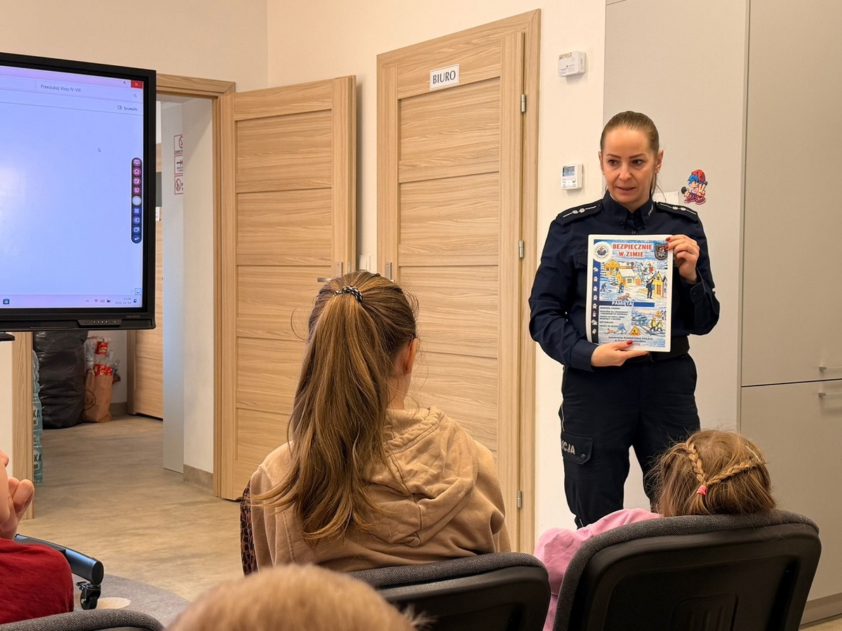 Mundurowa w trakcie spotkania przypominała zasady poruszania się po drodze, używania odblasków oraz zgłaszania niebezpiecznych sytuacji na numery alarmowe. Funkcjonariuszka omówiła zasady bezpieczeństwa których należy przestrzegać podczas uprawiania sportów zimowych i zabaw na śniegu. Policjantka przestrzegała również o niebezpieczeństwie związanym z wchodzeniem na lód na zamarzniętych zbiornikach wodnych.