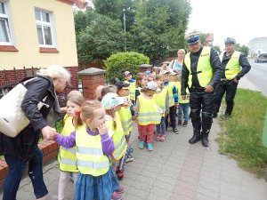 Policjanci drawskiej „drogówki” odwiedzili wczoraj przedszkole w Złocieńcu. Była to część ogólnopolskiej akcji informacyjno-edukacyjnej zainaugurowanej przez Komendę Główną Policji adresowanej do pieszych jako niechronionych uczestników ruchu drogowego.