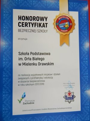 - Finał wojewódzkiego programu „Bezpieczna szkoła” w Mielenku Drawskim. Tegoroczny finał Wojewódzkiego Programu Prewencyjnego „Bezpieczna szkoła” zbiegł się z uroczystością zakończenia roku szkolnego w Szkole Podstawowej im. Orła Białego w Mielenku Drawskim. Podsumowuje on współpracę w zakresie bezpieczeństwa i profilaktyki wśród dzieci i młodzieży szkolnej.
